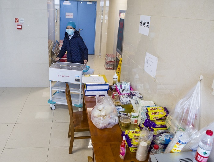 Das Essen für das medizinische Personal des Krankenhauses wird angeliefert. (Foto: Ma Gengping/China Pictorial)