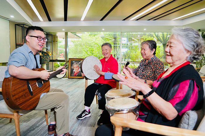 Musik als Medizin: Diese chinesischen Senioren haben Spaß an einem Musiktherapie-Angebot.