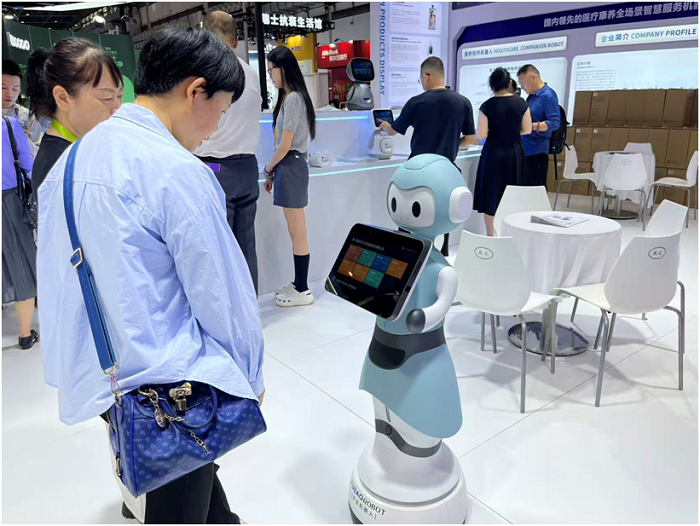 Doch nicht nur Flugautos sind zu sehen. Besonders Roboter dürfen nicht fehlen. Unter den verschiedenen Robotern zieht ein Roboter von Fubao Robot mit seinem niedlichen Aussehen und auch seinem leistungsfähigen Können die Aufmerksamkeit vieler Besucher auf sich. Er misst Blutdruck, Sauerstoffsättigung, Blutzucker und Harnsäure, erinnert an die Medikamenteneinnahme und plaudert mit Senioren. „Solch ein Roboter ist auf dem Markt sehr gefragt, weil viele die entsprechenden Bedürfnisse haben“, erklärt ein Besucher, der sich für den Roboter interessiert.