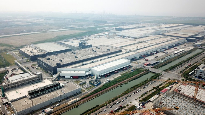 Mega-Investition: Luftaufnahme der Tesla-Gigafactory im neuen Bezirk Lingang in der Shanghaier Pilot-Freihandelszone. (Foto: Jin Liwang/Xinhua)