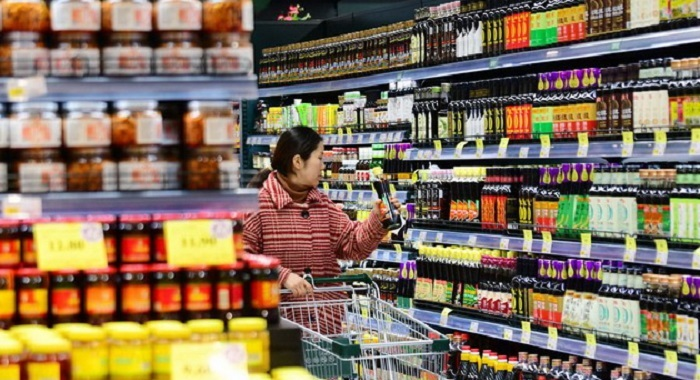 Ein Kunde wählt in einem Supermarkt in Wuxi in der ostchinesischen Provinz Jiangsu Gewürze aus. (Foto vom am 9. Dezember 2024/ Xinhua)
