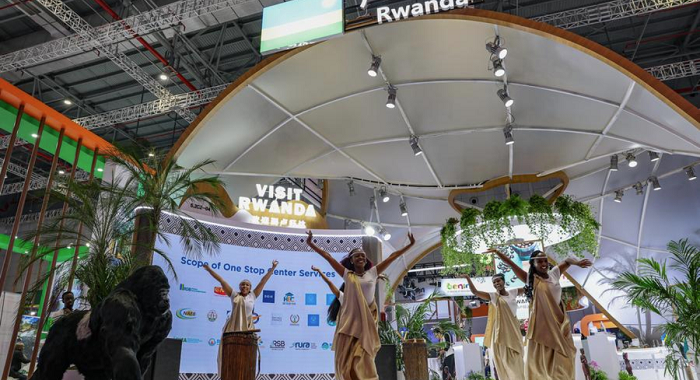 Tänzer am Ruanda-Pavillon der achten China International Import Expo (CIIE) in Shanghai, 5. November 2025. (Xinhua/Wang Zecong)