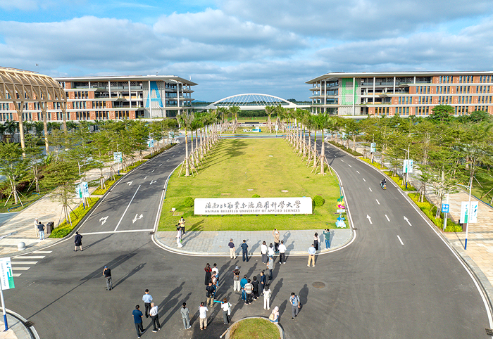 Chinesisch-deutsches Bildungsprojekt: Auf dem Campus der Hainan Bielefeld University of Applied Sciences in der Wirtschaftsentwicklungszone Yangpu. Es handelt sich um das erste eigenständige Auslandsuniversitätsprojekt in China.