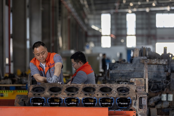 Ingenieure einer Tochtergese lschaft der China General Technology (Group) Holding Co., Ltd. auf Hainan führen Motorwartungsarbeiten durch. (Foto: Duan Wei)