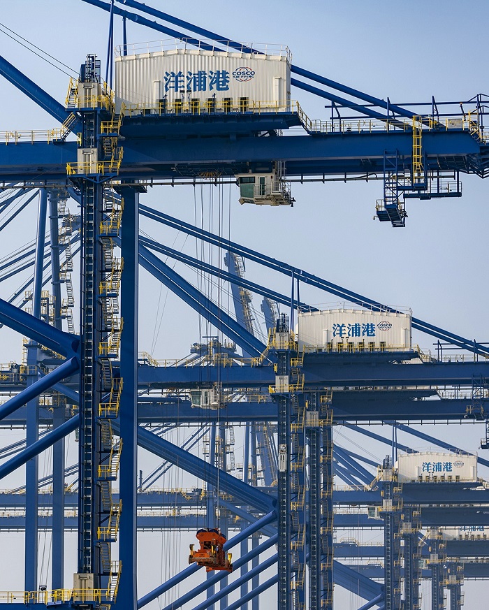 Wächst mit dem Hainan-Model: das Internationale Containerterminal Yangpu mit seinen Kaikränen
