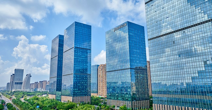 „Windows to Global Trade“: Der Name dieses Gebäudekomplexes in Haikou ist Programm. (Foto: Feng Shuo / Hainan Daily)