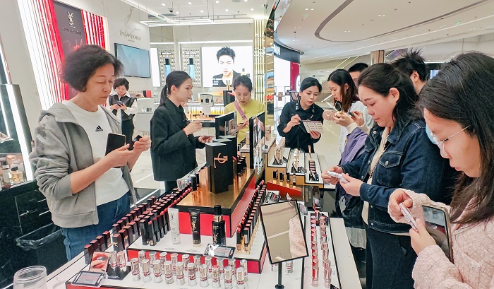 Steuerfrei einkaufen: Diese Kundinnen stöbern im CDF Haikou International Duty-Free Shopping Complex nach Schnäppchen. (Foto: Chen Yuancai / Hainan Daily)