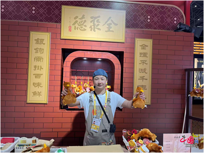 Die Quanjude Group, die vor allem für die Peking-Ente bekannt ist, schafft zum Beispiel einen trendigen Erlebnisraum für die hundertjährige Traditionsmarke. Die vor allem bei jungen Menschen beliebte Peking-Ente-Puppe ist auch hier zu sehen. Das ist ein Produkt, das sich an den Trend des emotionalen Konsums anpasst. Die Entenfigur heißt „Hao De Ya“ (klingt wie „OK“ und „Gute Ente“). Nach ihrer „Geburt“ im letzten Jahr war sie bereits mehrmals ausverkauft. Dazu passend gibt es noch Motive von Lauchzwiebeln, Dip-Saucen und dünnen Pfannkuchen, die das Gesamtessen der Peking-Ente simulieren. Viele Besucher kommen vor Ort, um die kulturkreativen Produkte dieses Gastronomieunternehmens zu entdecken und daran Freude zu haben.